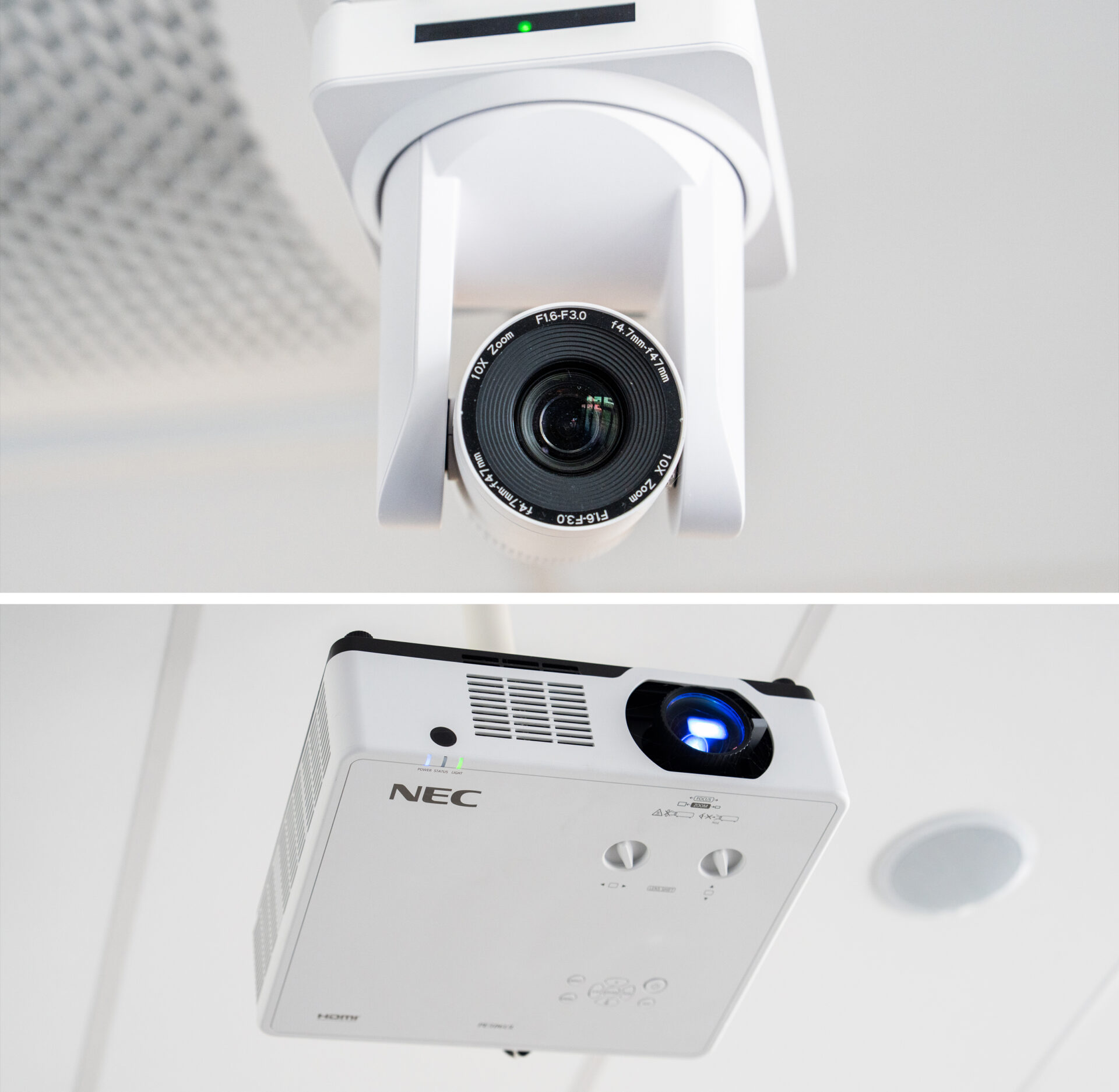 The technologies also support video conferencing and hybrid meetings, combining participants present in the room with an audience connected online. A video conferencing camera provides high-quality image transmission during online broadcasts or remote presentations.