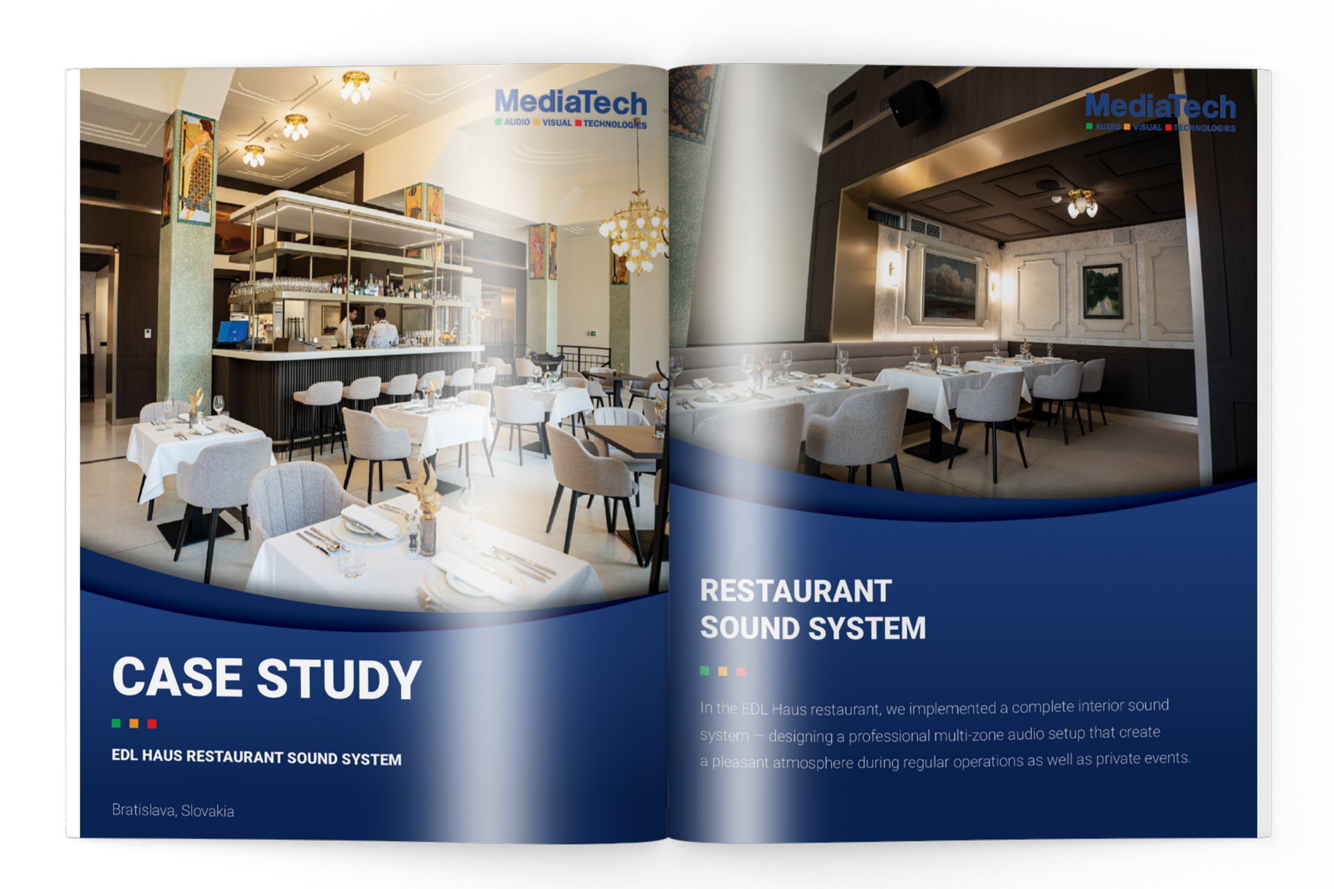 If you are looking for professional sound system solutions for a restaurant, bar, café, or other commercial space, MediaTech is here for you. Our expertise and individual approach ensure that your requirements are met down to the smallest detail from the initial concept to the final implementation.