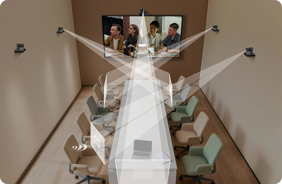 Tam, kde jedna kamera nestačí, využíva MVC S90 multi-kamerové riešenie s inteligentnými PTZ kamerami UVC86. Každá kamera disponuje 4K senzorom a 12x optickým zoomom, čo zabezpečuje krištáľovo čistý obraz aj vo veľkých sálach. Systém inteligentne a plynule prepína medzi pohľadmi bez rušivých mechanických pohybov, takže účastníci sú vždy v centre diania.